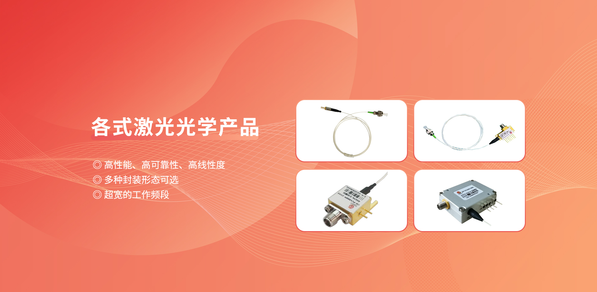 公司產(chǎn)品廣泛應(yīng)用于衛(wèi)星通信、光傳感、人工智能、光纖通信、無(wú)線通信、導(dǎo)航定位、泛物聯(lián)網(wǎng)、激光定向能、超快超強(qiáng)超微激光加工等領(lǐng)域,并已為國(guó)內(nèi)諸多科研院所及高校提供系列化產(chǎn)品及解決方案。